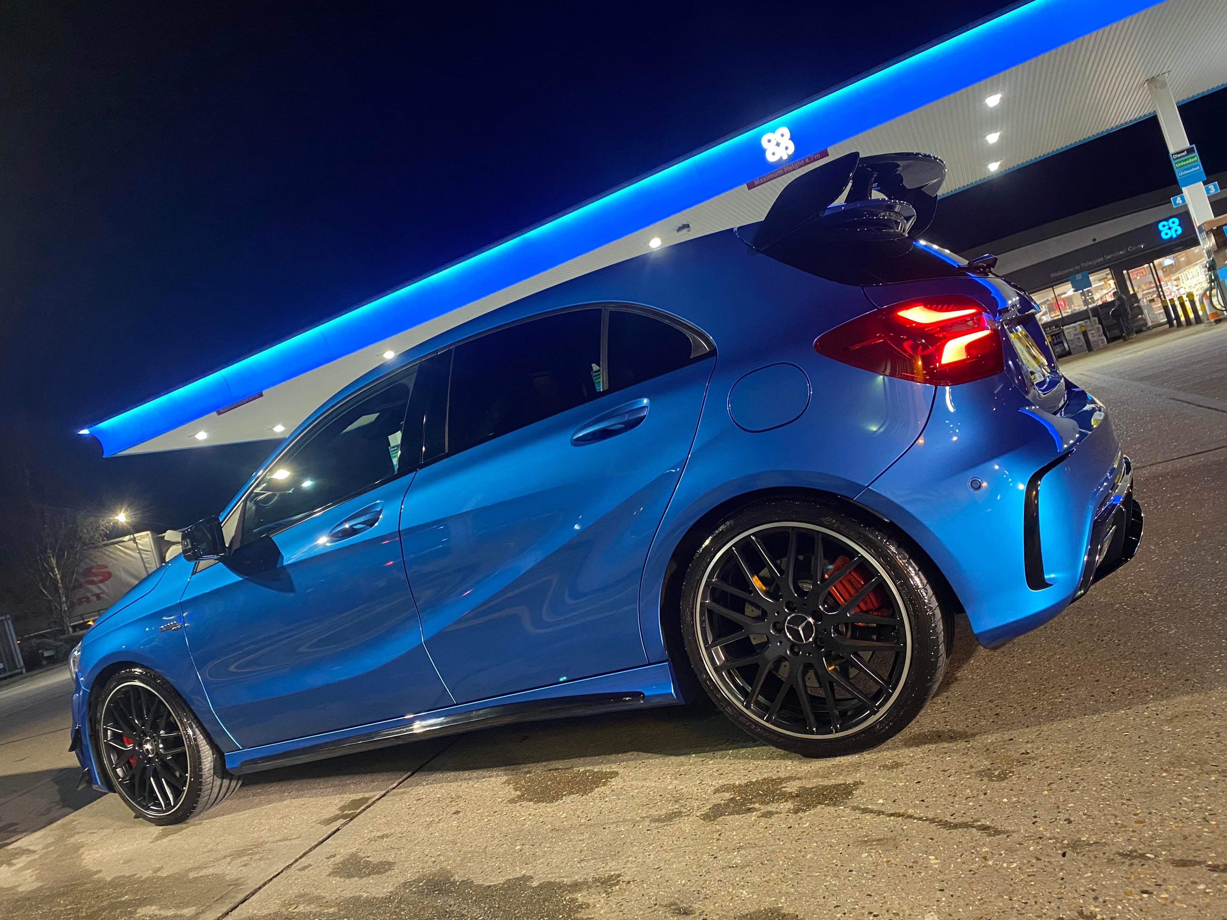 Lewis has owned the car nearly a year. He has always loved the A45 AMG and had fallen in love with them since they first came into production! He had to wait nearly 2 years to get the colour he wanted (Lunar Blue)